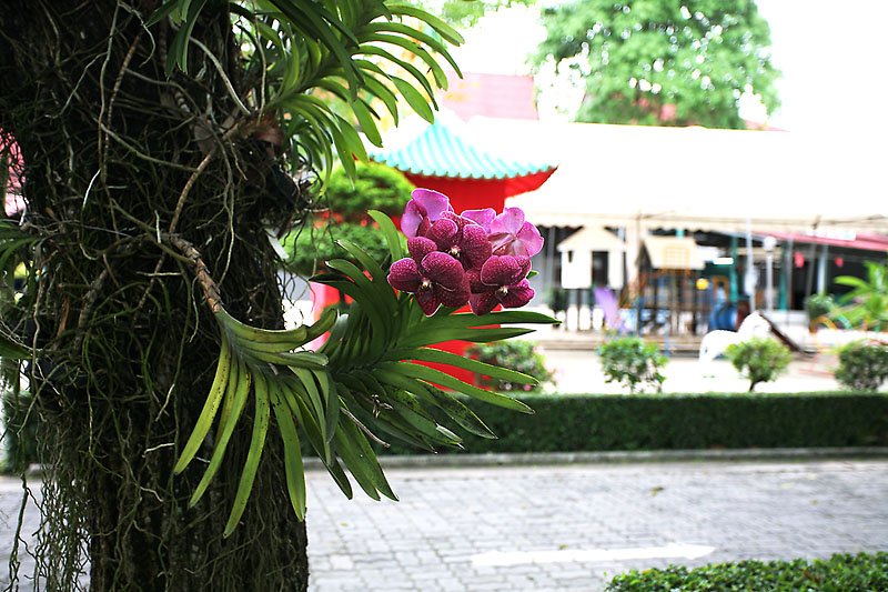 태국 미니시암 안에 있는 나무 중간에 난을 심어(?) 났는데