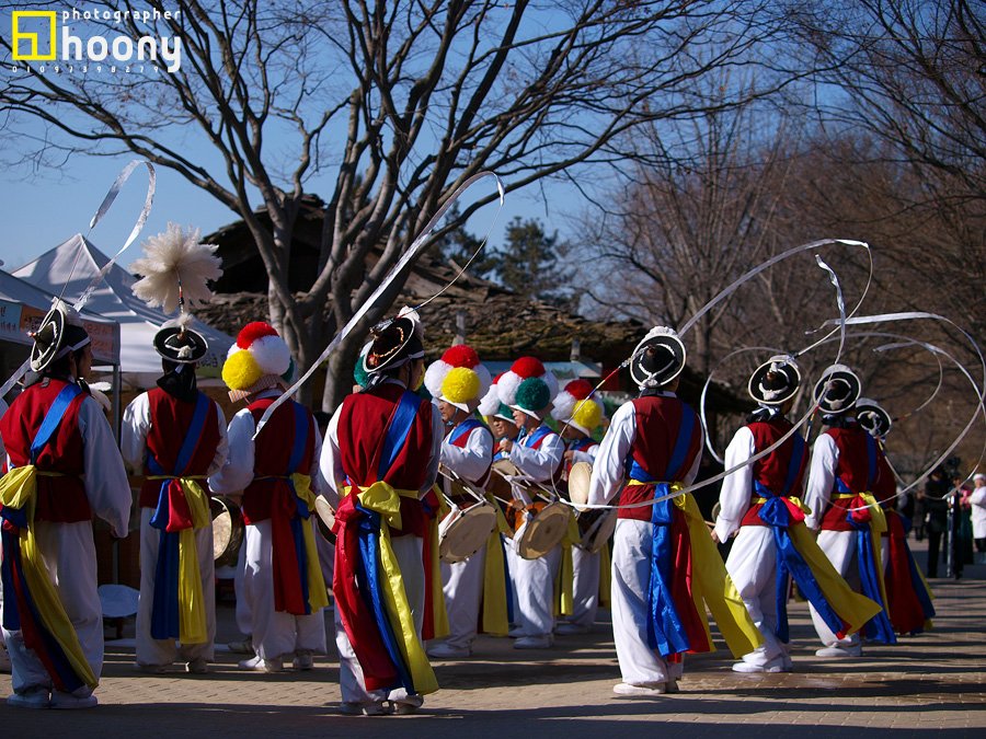 농악대가 민속촌 안에 가게들을 돌며 지신밟기를 하고 있는걸 찍었습니다.....^^~