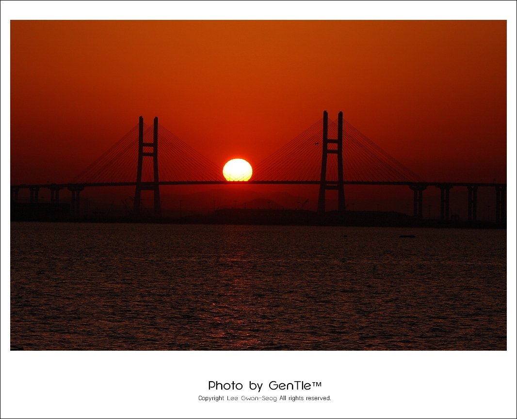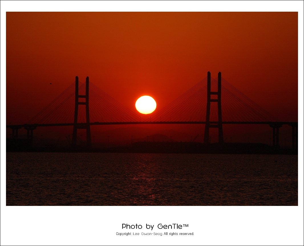 대교 사이에 정확하게 해를 넣으신 멋진 샷 즐감입니다.^^
