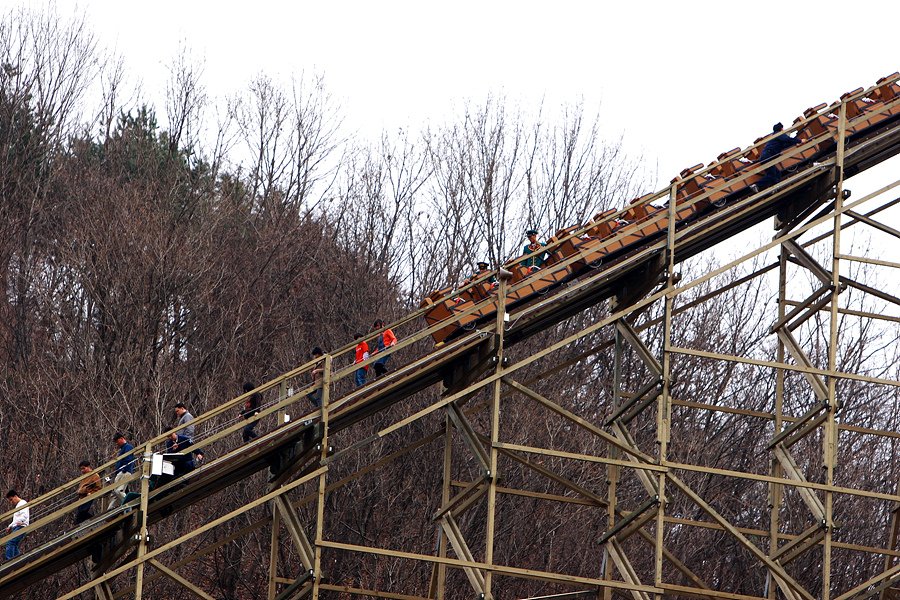 먼가 하고 봤더니 새로 개장한 놀이기구가 고장나서 저러고 있더군요....