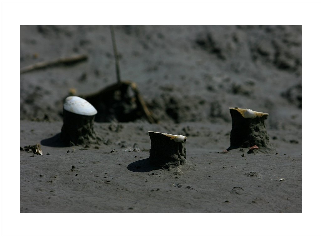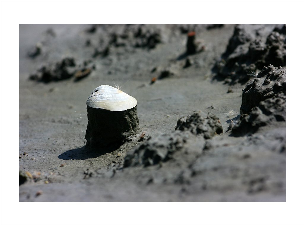 작은 조개껍질이 놓여있던 곳만 비를 피 할수 있어