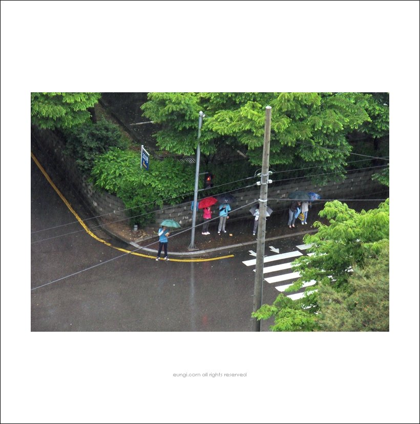 비가 와요.