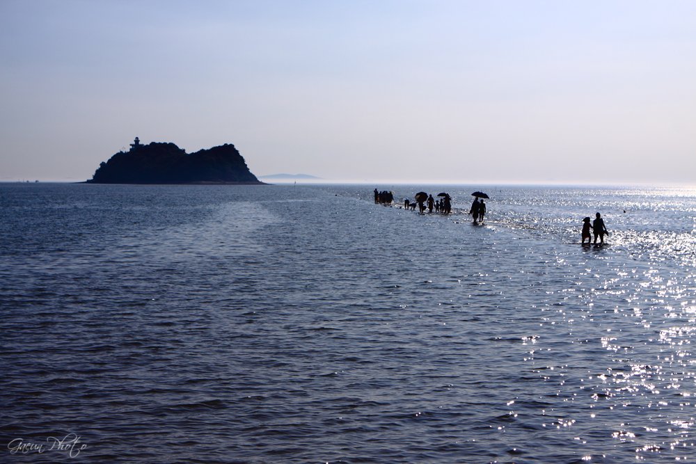 물이 들어오는 바다위를 바삐 밀려나오는 사람들.....