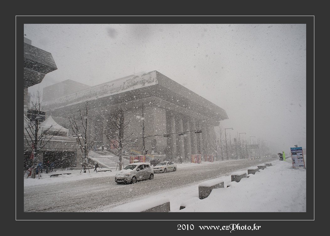 그래도 이순신 장군은 눈을 맞으며 끝까지 버티고 서 있네요.