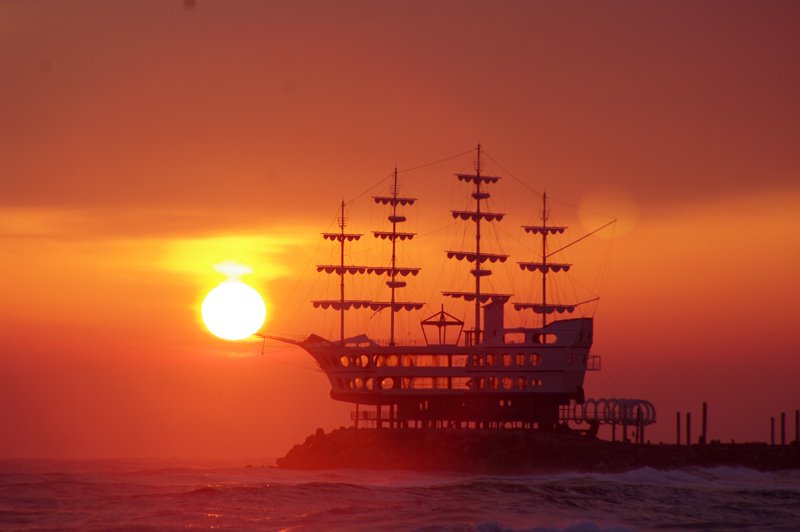 뱃머리에 대롱대롱 달린 햇님이