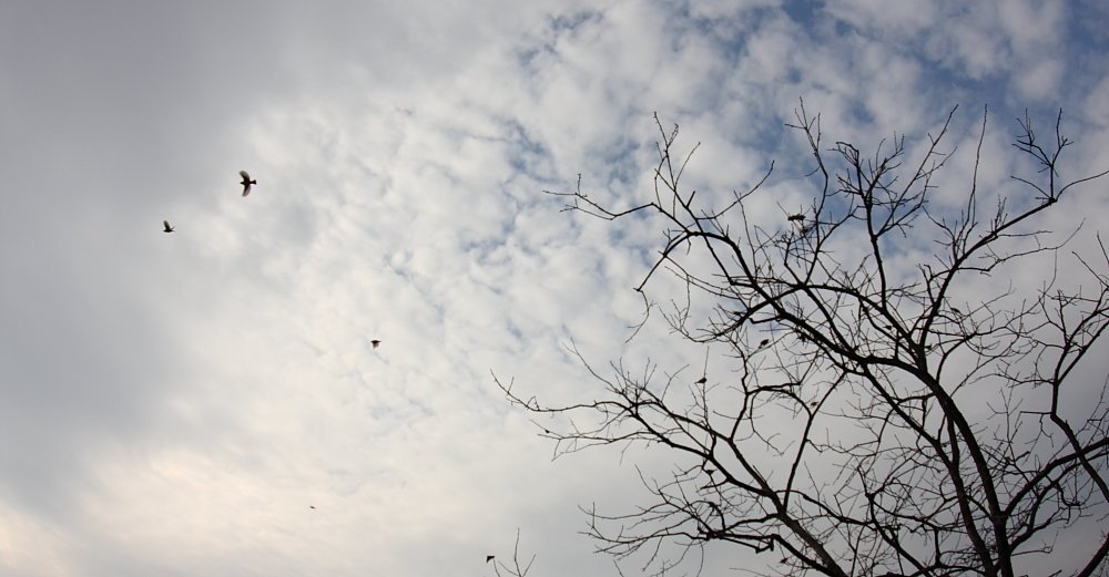 참새가 겨울 하늘을 날아 올랐다.