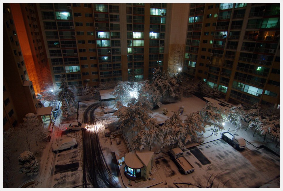 1 추천 수 0 비추천 수 오렌지사러 나갈때만해도...이정도일줄을 상상을 못했는데..12시 잠을 들기전 밖의 모습은 정말 정말 장관이었는데..그리고 출근을 위해 평소보다 더 일찍 아침을 맞이하여...베란다로 나갔을때의 환상은....출근하는 네네... 눈이 행복했것만...역시나.. 퇴근하니.......아무일 없다는 듯이... 다시 도시의 색을 찾아가네요...잠시라도... 눈은 정말 호강했네요...내년의 눈꽃을 기대해봐야겟네요...
