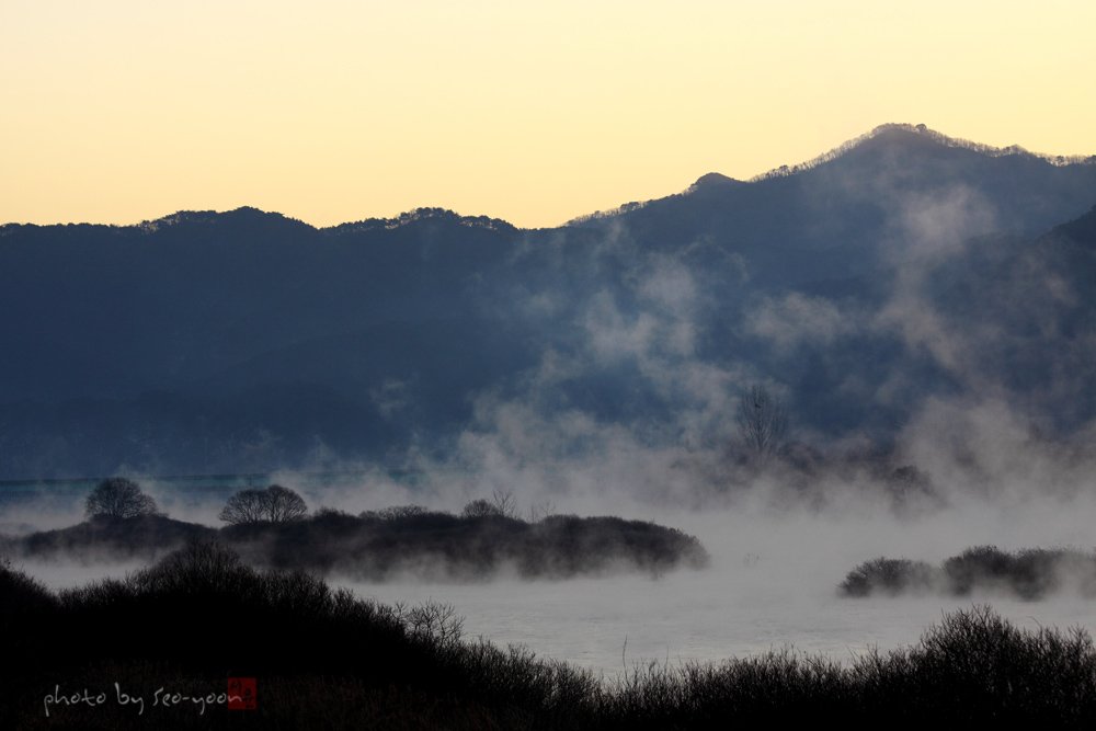 온통 꽁꽁얼어붙은 시린새벽....그곳에 홀로히 정적을 깨는 물소리와조용히 피어오르는 물안개를 만나던날....