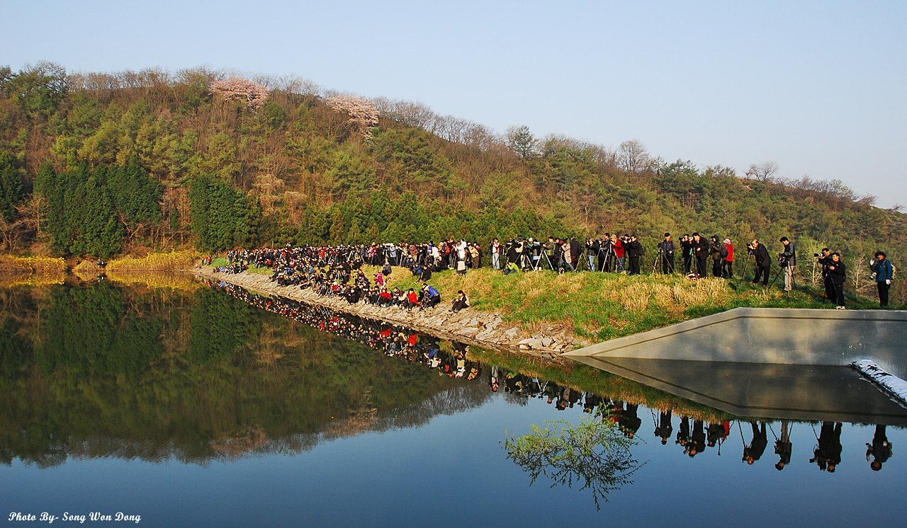 서산용비지에 많은 사람들이 모여들었다..