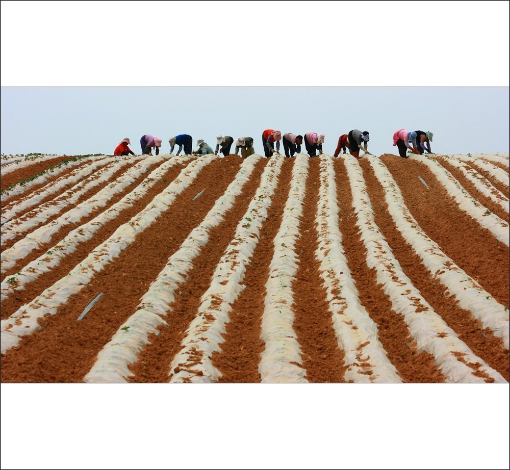 끝을 알수없는 그밭의 길이며 허리구부려 무언가를 열심히 심고있는 농부의 손길이며