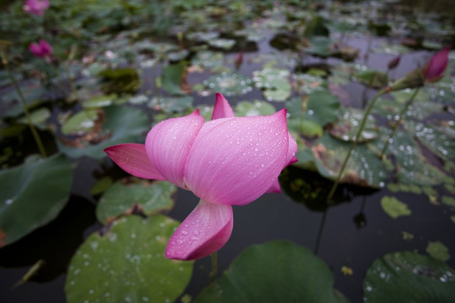 빗속의 연꽃이 안스러워보이지만 아름답습니다.