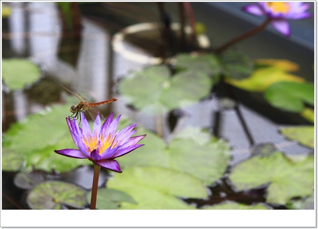 연꽃에 앉은 잠자리가 인상적입니다.