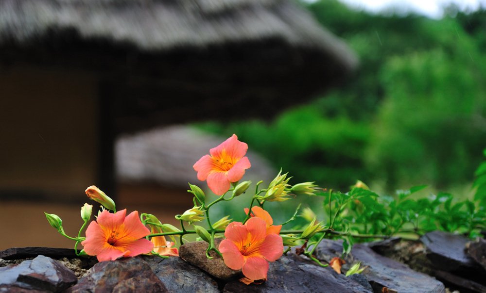 능소화가 초가집 때문에 더 빛나네요..^^ -