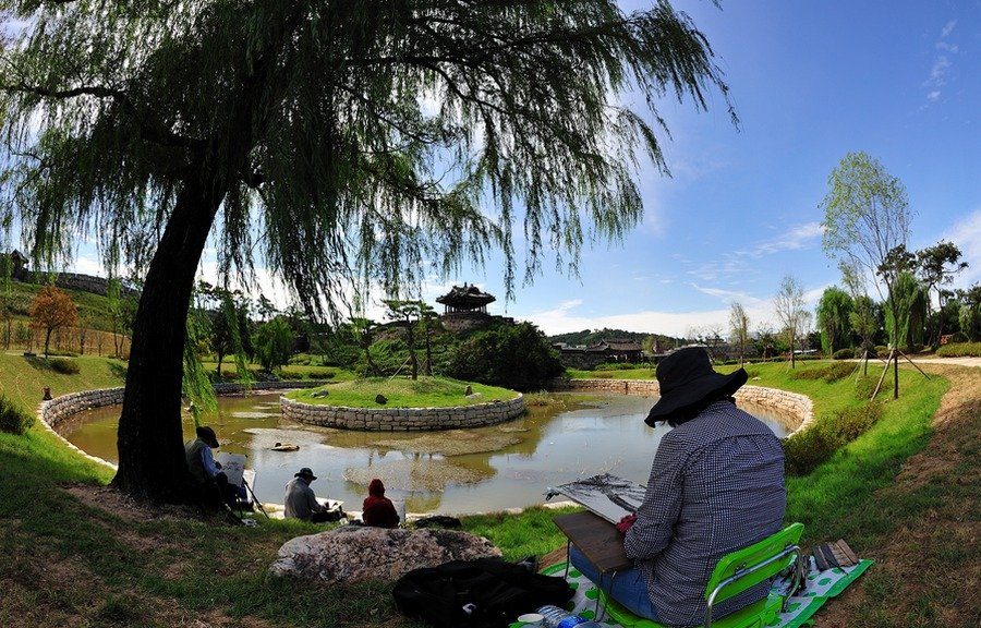 1. 연못 중앙에 버드나무를 없애고 ,,소나무 세그루를 심었더군요..