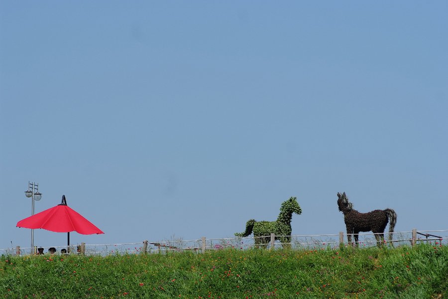 경치좋은 언덕위에서 파란 하늘아래 빨강우산.......도란도란.......너무 즐겁습니다. -