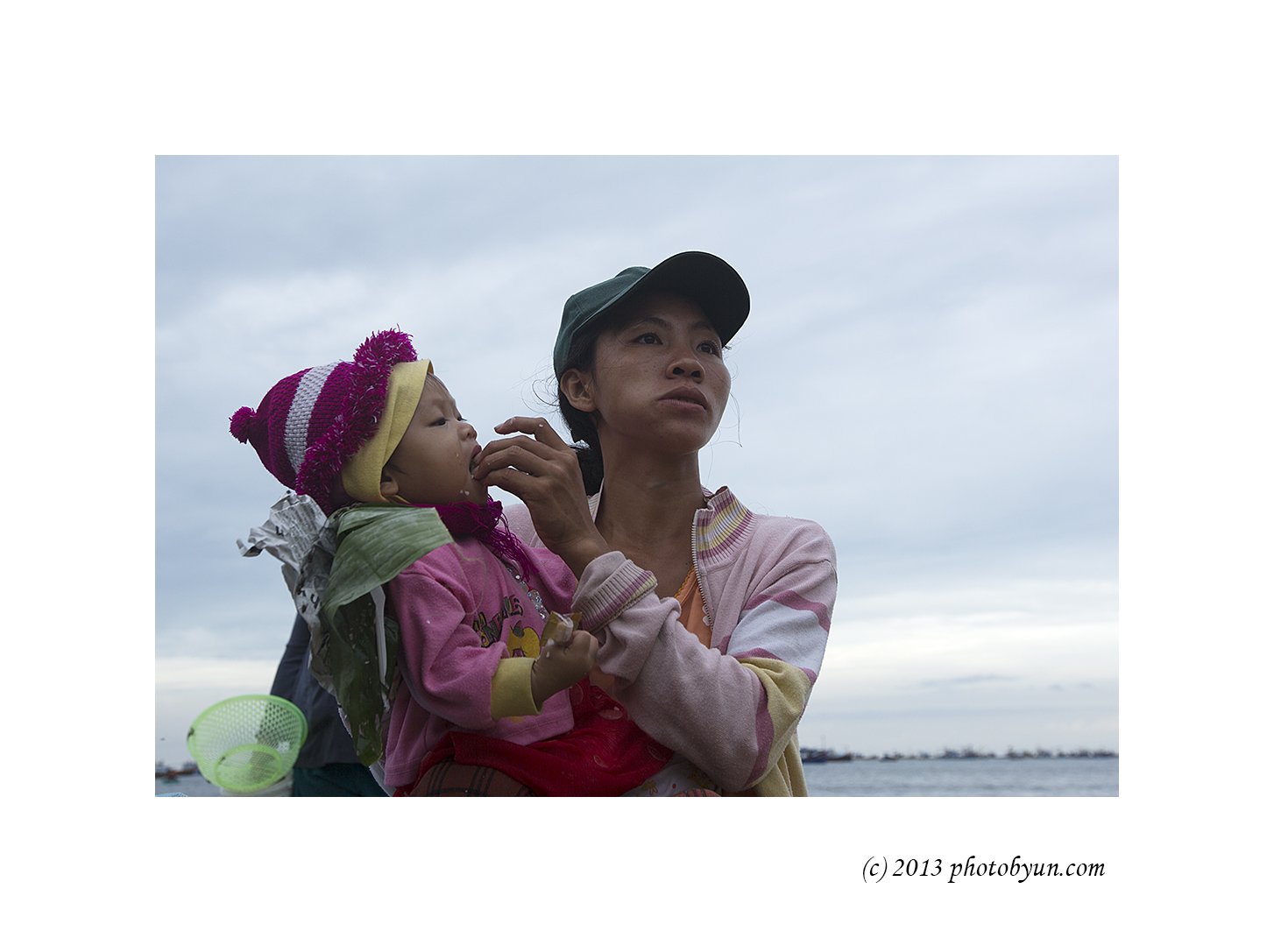 ||0||020 젊은 엄마가 오망졸망한 아이을 3를 대리고 다니며 생선을 얻어(좋게 말해서 동냥이다) 생활을 하고 있다.