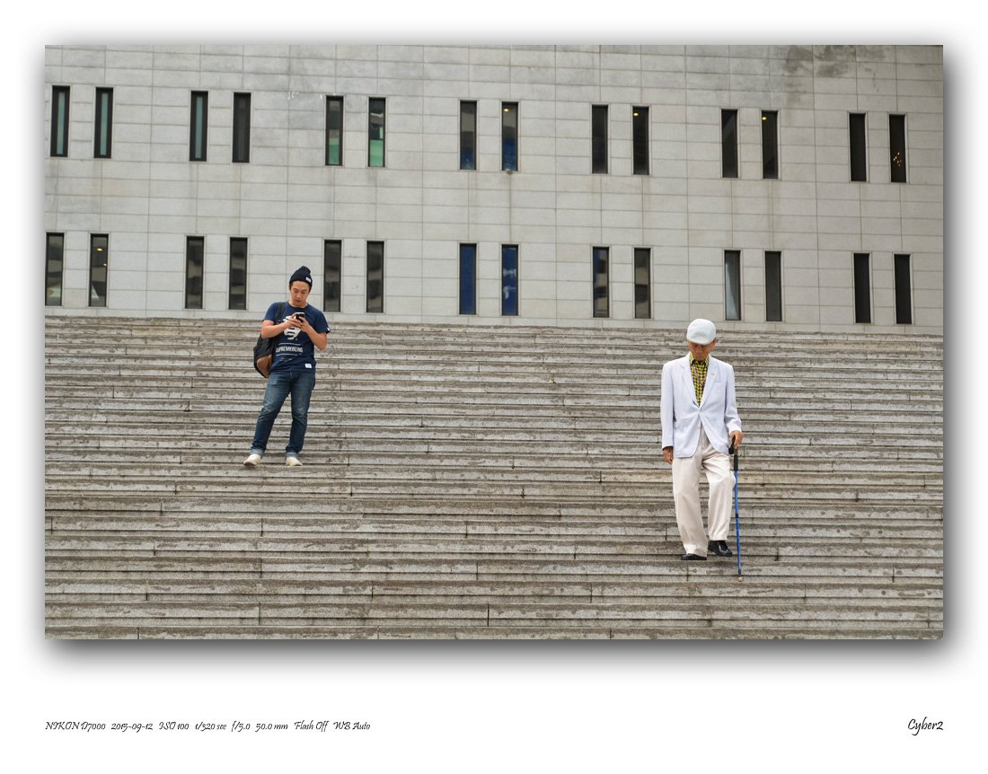 젊은이와 어르신의 인물 대비가 정말 좋습니다. -