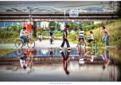 침수된 오산천 산책로